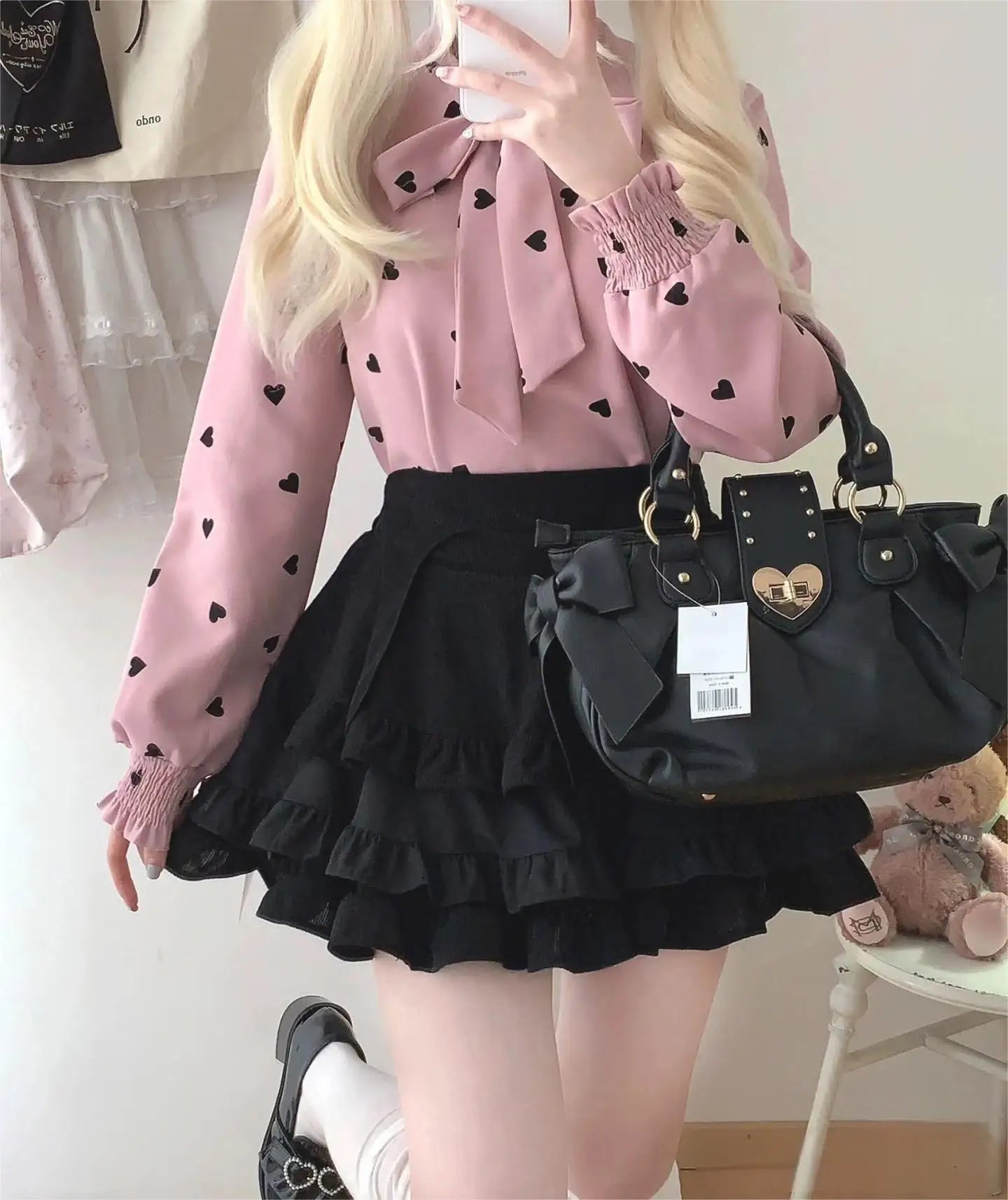Sac Fourre-tout Cœur Nœuds Rivets : Affirmez Votre Élégance Tendance au Style Japonais
