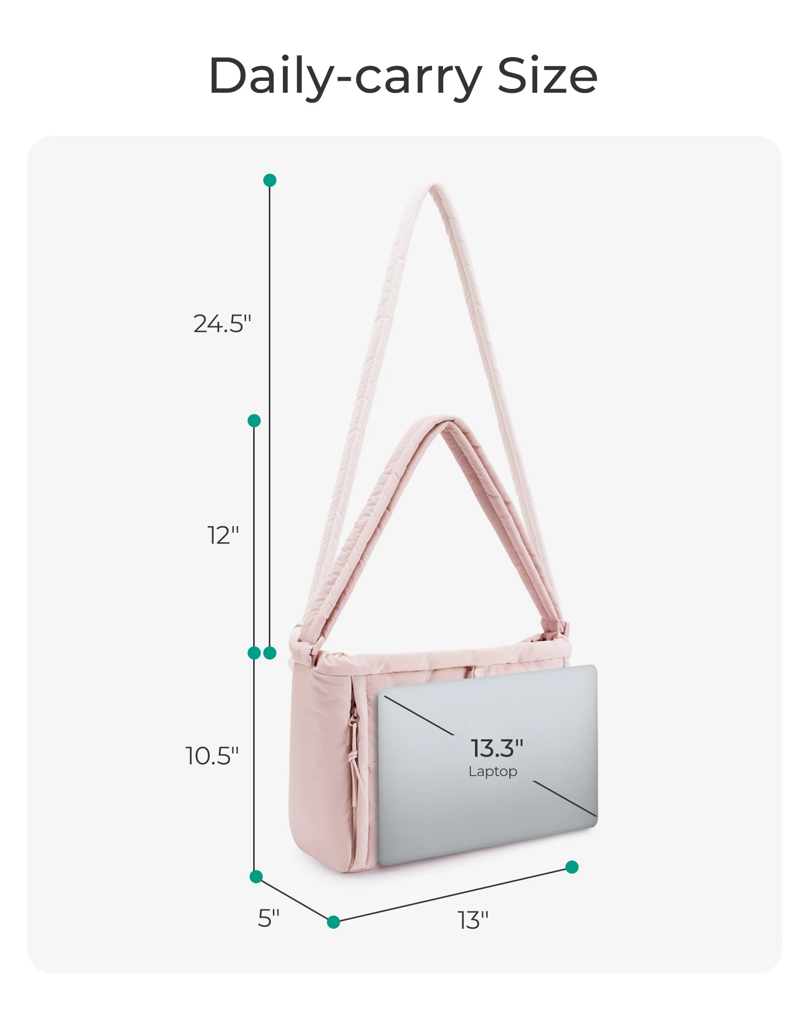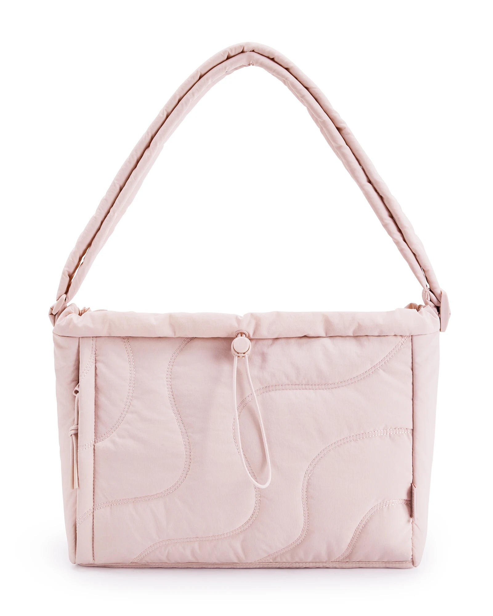 Le design de ce sac fourre-tout puise son inspiration dans les esthétiques emblématiques des années 80 et 90, période où les accessoires rembourrés et les teintes pastel comme ce rose poudré connaissaient un franc succès. Sa construction matelassée, avec ses motifs de piquage organiques et fluides, évoque un confort douillet et une touche de fantaisie qui rappelle les tendances décontractées mais sophistiquées de ces décennies. C'est une réinterprétation moderne qui capture l'essence d'un style rétro avec une élégance contemporaine.