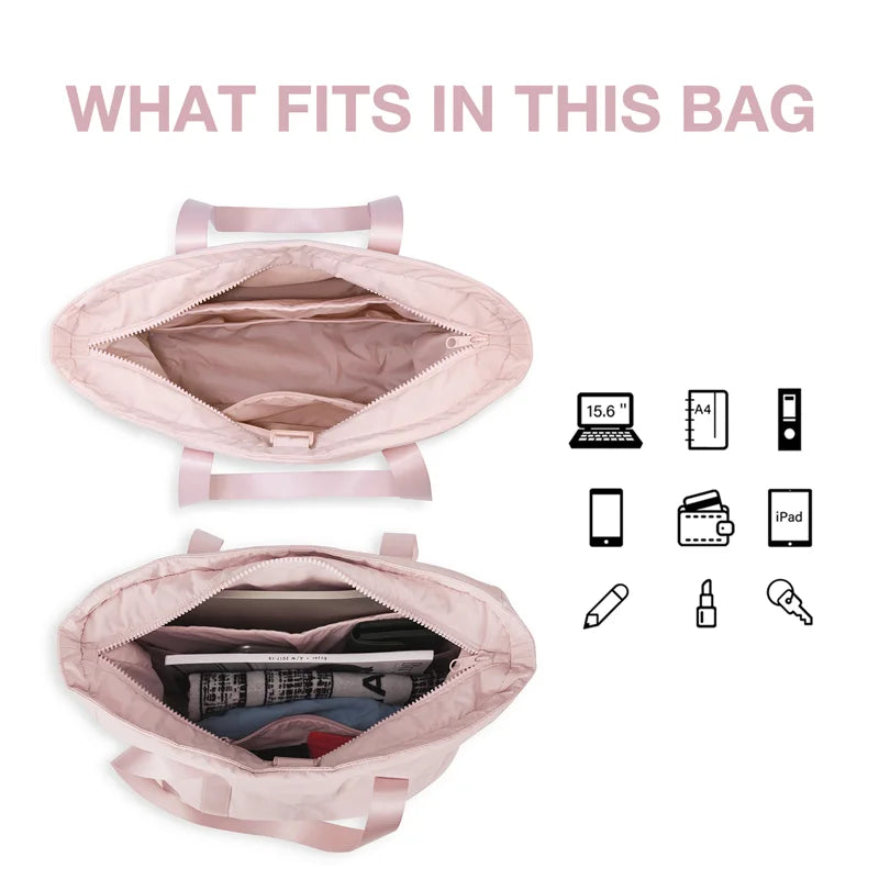 Laissez-vous séduire par l'ingéniosité des sacs fourre-tout en polyester. Fabriqués dans un matériau léger et résistant, ils garantissent une durabilité exceptionnelle tout en étant agréables au toucher. Avec des dimensions généreuses (environ 40 cm de largeur à la base, 30 cm de hauteur et 15 cm de profondeur), ces modèles sont parfaitement adaptés pour protéger et transporter un ordinateur allant jusqu'à 15.6 pouces, sans oublier vos documents, votre portefeuille et autres indispensables. La teinte rose apporte une touche de douceur et de modernité, rendant ces sacs non seulement fonctionnels mais aussi un véritable atout mode. N'attendez plus pour transformer votre organisation quotidienne et voyager l'esprit léger, avec un sac qui combine l'utile à l'agréable.