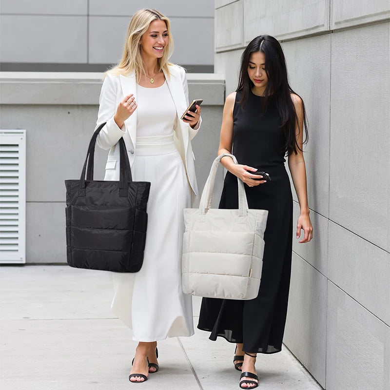 Chers passionnés de mode et de praticité, vous rêvez d'un accessoire qui combine à merveille le chic et le confort ? Imaginez-vous flânant en ville, vous rendant au travail ou préparant une escapade le temps d'un week-end, toujours accompagné d'un sac qui ne sacrifie jamais l'esthétique pour la fonctionnalité. Les sacs fourre-tout en polyester rembourré, comme ce magnifique modèle lilas, sont conçus pour celles et ceux qui refusent de choisir entre style et bien-être. Leur texture matelassée unique offre non seulement une sensation agréable au toucher, mais confère également une allure moderne et tendance à toutes vos tenues. C'est l'accessoire idéal pour apporter une touche de douceur et d'originalité à votre garde-robe, faisant de chaque sortie un moment de pure élégance décontractée.