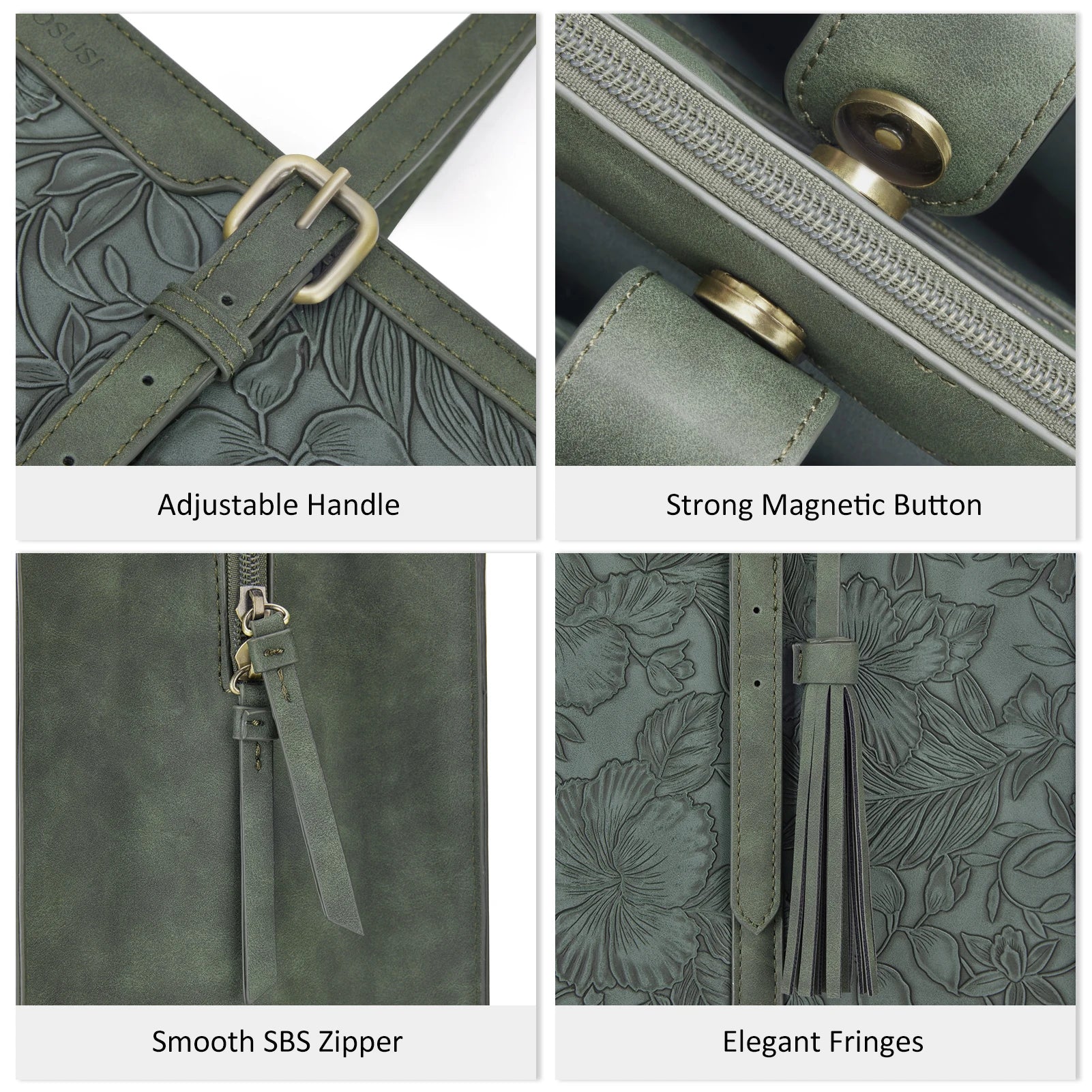Imaginez-vous parcourir votre journée, du bureau aux rendez-vous professionnels, puis à une sortie décontractée, toujours accompagnée d'un sac qui fait tourner les têtes. Fabriqués en cuir vegan durable et dotés de magnifiques finitions en laiton, les sacs fourre-tout ne sont pas seulement esthétiques, ils sont aussi remarquablement résistants à l'usure et supportent une charge importante. Leurs anses ajustables offrent un confort de port idéal, que vous les portiez à l'épaule ou à la main. Pratiques avec leur fermeture éclair et leur fermoir, ainsi qu'une boucle magnétique pour un accès rapide, ces sacs sont pensés pour votre facilité. Ils sont l'incarnation de l'accessoire polyvalent, idéal pour la femme moderne qui ne veut plus choisir entre style, confort et une organisation parfaite. Offrez-vous la liberté de transporter votre monde avec grâce.